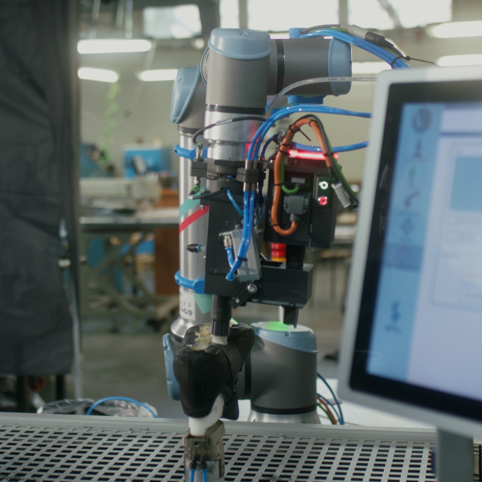 Our Universal Robots Cobot integration enhances precision in repetitive tasks like gluing and buffing. This boosts quality control, production efficiency, and enables consistent results for complex assemblies.